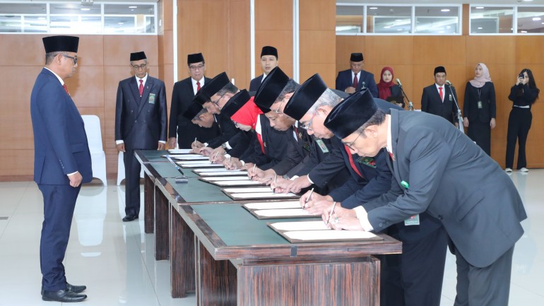 Jakarta – Sekretaris Mahkamah Agung Republik Indonesia Sugiyanto, S.H., M.H., secara resmi melantik dan mengambil sumpah jabatan delapan Hakim Tinggi Pengawas baru untuk Badan Pengawasan (Bawas) Mahkamah Agung RI. Acara sakral ini digelar dengan khidmat di Lantai 2 Gedung Tower Mahkamah Agung pada Senin, 3 November 2025, menandai komitmen MA dalam memperkokoh pengawasan internal dan menjaga marwah peradilan.
